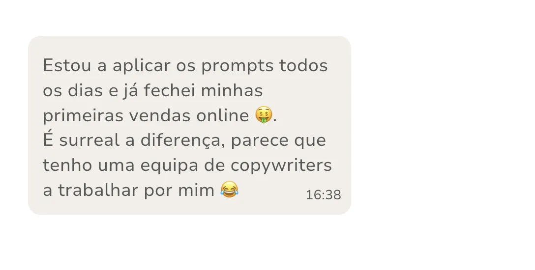 Este é apenas 1 dos +100 prompts do eBook. Imagina o impacto de ter todos na tua mão.